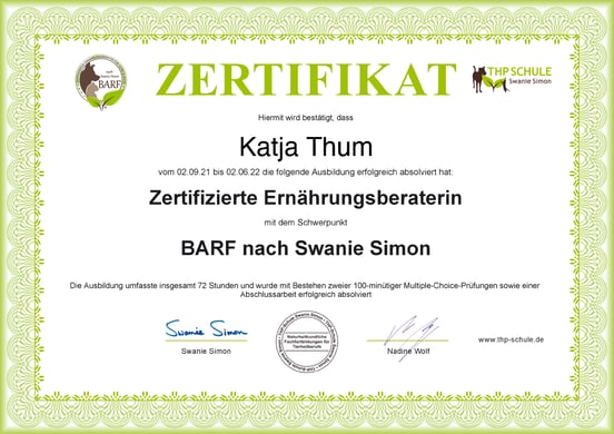 Deshalb ist auf ein artgerechtes, frisches und ausgewogenes Futter zu achten.
